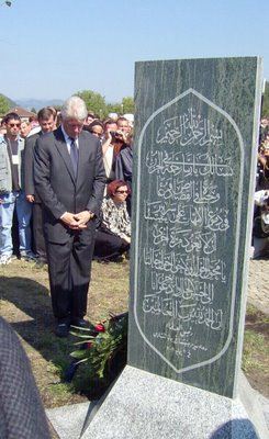 РАТНИ ЗЛОЧИНАЦ БИЛ КЛИНТОН У СРЕБРЕНИЦИ ОДАЈЕ ПОШТУ АРАПСКИМ МУЏАХЕДИНИМА-ИСЛАМСКИМ ЕКСТРЕМИСТИМА(АЛ-КАИДА), ЛИКВИДИРАНИМ ОД СТРАНЕ ВОЈСКЕ РЕПУБЛИКЕ СРПСКЕ. НА СЛИЦИ СЕ ЈАСНО ВИДИ НАДГРОБНИ ИСЛАМСКИ РЕЛИГИОЗНИ САДРЖАЈ НА АРАПСКОМ. ДА ЛИ СУ ОВУ СЛИКУ ВИДЕЛИ И АМЕРИЧКИ ГРАЂАНИ ЧИЈИ СУ НАЈМИЛИЈИ УБИЈЕНИ ОД СТРАНЕ ИСТИХ ТЕРОРИСТА 11 СЕПТЕМБРА 2001?