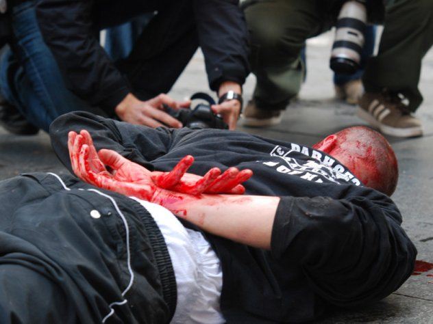 Након више од пола сата, ухапшени и тешко повређени инвалид, господин Харис, је пребачен у полицијску марицу, да би тек накнадно због озбиљности повреда био пребачен у болницу. Полиција је његове повреде цинично назвала лаким телесним…