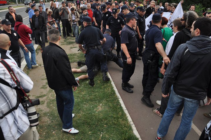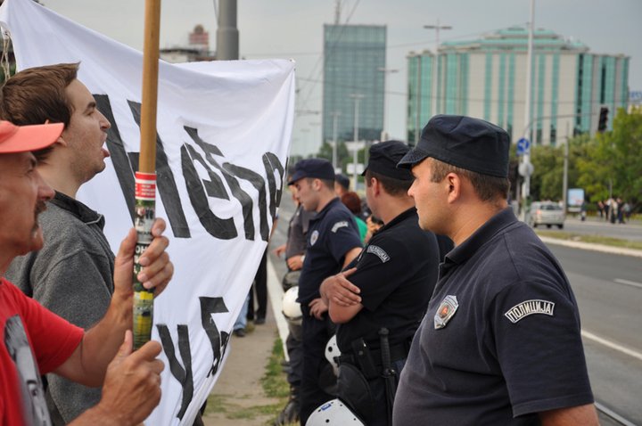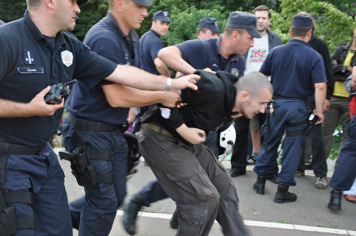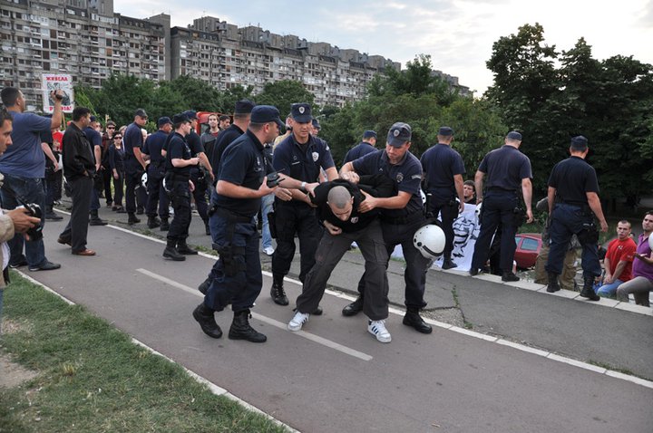 Obavestavamo vas da je na danasnjem protestu Anti-NATO kampanje u 18h ispred Sava Centra policija uhapsila barem sedam mirnih, nenasilnih demonstranata. Koliko nam je poznato, dvojica se trenutno nalaze u policijskoj stanici u ulici 29. Novembra, a ostali se nalaze u policijskoj stanici Novi Beograd.