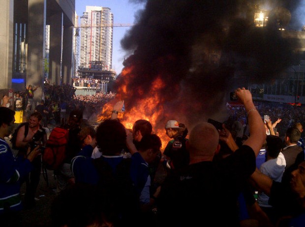 И ево нас данас овде у Ванкуверу, у Британској Колумбији, у западној Канади. Много више уличног разарања и штете него онда у Београду, много више дивљаштва и варварских аката, град „спаљен“ и у „рушевинама“- али за дивно чудо, готово нико да те канадске злочинце назове правим „именом“, и скоро свако покушава да умањи размере тог „догађаја“, кривећи за све шачицу хулигана. Како сад то? Па цео свет је гледао уживо, да су се, буквално хиљаде младих варвара, очигледно „ухрањене“ и размажене градске „деце“, из средње класе, или боље стојећих породица- очигледно забављале својим злочињењем, и чак снимале видео и фото успомене својих злодела попут ратних сувенира, властитим скупим „електронским играчкама“. И на крају испада да се све „то“ десило, само зато што је њихов омиљени хокејашки тим изгубио утакмицу!?