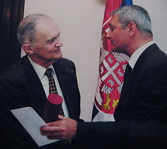 др Марко С. Марковић прима награду "Драгиша Кашиковић" из руку председника Матице исељеника Србије мр Радована Калабића