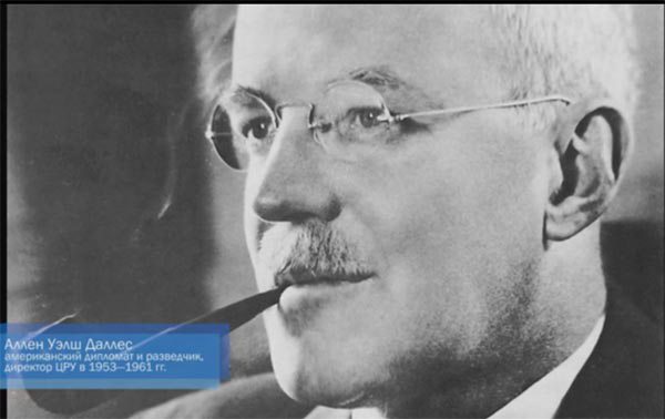 Желим да причам о меморандуму Алена Далеса. Тај меморандум се сматра кривотворином, измишљотином КГБ итд. Али ипак, то је било написано или није написано, али се озбиљно претпоставља да се појавило негде крајем 1940-тих година. Ален Далес је легендарни шеф CIA од 1953. до 1961. године. Узгред, Иља Еренбург је о њему подругљиво писао да ће Ален Далес, ако доспе у рај, и тамо кренути да одстрељује анђеле. Ја не желим да га сатанизујем, просто желим да људи који то не знају, а таква је, уверен сам, већина, који никада нису чули нити читали о томе, да они просто добију ту информацију, а онда ћемо тим поводом расправљати. Ево шта је написано у том – кривотвореном или не – документу, који бих желео да чујете.
