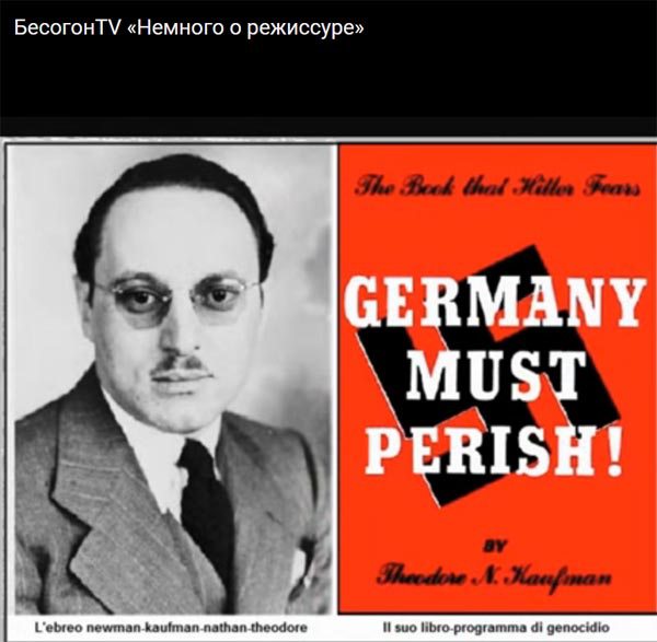 Али истовремено, тј. 1940-тих година, тачније 1941. године, у САД излази књига извесног Теодора Кауфмана под насловом Немачка мора да нестане. Она није била нешто популарна у Америци, али ју је користила тадашња Немачка као доказ агресије спољног света. Кауфман је у својој књизи предлагао стерилизацију одраслог становништва Немачке. Он као да је у томе видео генетско истребљење нацистичког начела у германској нацији, искорењивање духа милитаризма путем генетске модификације Немаца.