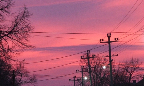 Најпре се, између сенки лепршавих облака, пројављају румене, па ружичасте, па пурпурне, па љубичасте, те, на концу, малинасте вагре.