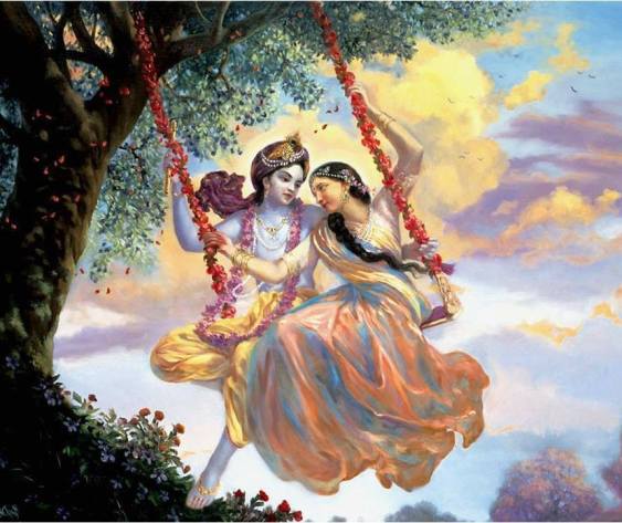 „На глави миле Раде, стоји венац исплетен од првог цвећа. На глави Кришњег је венац од љиљана. Појављиваху се Рада и Кришњи на морском стрмом жалу, обасјавајући поднебесје, Попут Дуге и Сунца.“