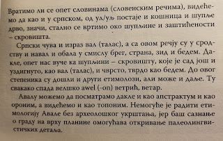 У горе поменутој књизи у једном од поглавља Радован говори о етимологији имена Авала.
