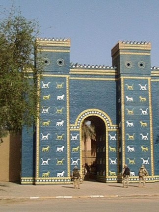 Иштарина врата саграђена у око 575. године пре Христа, и била су главни улаз у Вавилон. То су осма од осам врата.Био је то један од најимпресивнијих споменика на Блиском Истоку. Иштарина врата, као део Бааловог храма саградио је Набукодоносор ИИ. око 575. пр. Хр.. Врата су била троструко украшена с 575 рељефа који приказују лавове као Иштарине симболе, змајеве, као Мардукове бикове као Ададове симболе. Ликови су беле и светлосмеђе боје на плавој подлози. Град је био опасан двоструким зидом с 8 великих врата од којих су свака била посвећена једном богу. (Иштарина су била северна).