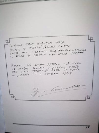 Потпуно сте у праву што се тиче квалитета илустрације Песникове, руком писане, књиге. Ти цртежи су његови. Прозирни су и у оригиналу. Због тога неке странице објављујемо без илустрације. Он је био и талентован сликар. То смо хтели да покажемо. Сајт нам даје ограничене могућности и технички нас држи у задатом обрасцу. Посебно је Песник имао таленат да за трен нацрта делић предела поред кога смо пролазили или да хаику – цртежом илуструје наш разговор. Те цртеже је делио, као што је то радио и са својим песмама, другим писанијама, или књигама. Ништа није чувао за себе. Сматрао је да све његове творевине, од момента настанка, нису више његове. Стога је родбини, или неком другом, тешко да саставе његов опус у виду сабраних дела.
