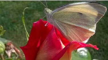 „Лептир пије у градини ружу”.