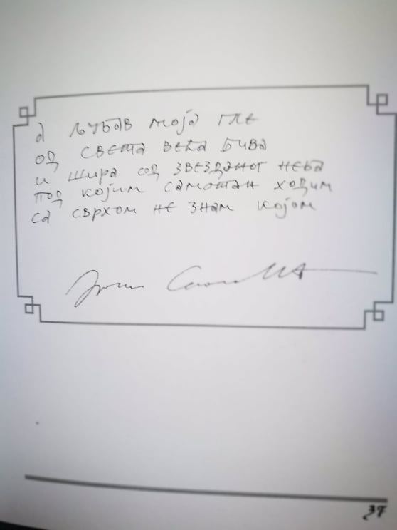 13 септембра, 2019 Драган Симовић:А љубав моја, гле, од света већа бива (страница 37) -руком писана и осликана књига Песника- објављује се у целости- https://www.instagram.com/srpskizurnal/ Email a link to a friend(Отвара се у новом прозору) Е-пошта Подели на Фејсбуку(Отвара се у новом прозору) Фејсбук Share on LinkedIn(Отвара се у новом прозору) Линкедин Share on X(Отвара се у новом прозору) X Share on Instagram(Отвара се у новом прозору) Instagram Свиђа ми се Учитавање...