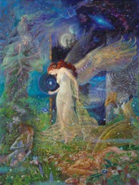 у зелен-плавом и пурпурном небу, понад модрог горја и ветрова, понад свих бесова и звериња, Последњи ВедСрбин, гле, сазерца јасно у сутон вечерњи Сваргине Ратнике Светлости како се на облацима и ветрима низводе, како опасују Небо и Земљу, и како затварају божански круг око свега што бауља и гамиже Земљом!