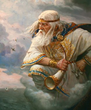Бог је одувек био представљан са дугом сивом брадом као симболом мудрости и искуства, и са златним луком у рукама.