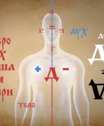 Дух пресликавајући своје начелне принципе (Свест, Звук, Светлост, Реч) твори човеков ум (свест, слух, вид, говор) који се као такав усељава у тело са отговарајућим органима (мозак, нос, уши, очи, уста). Под привлачним дејством Духа, животна сила супротног усмерења подиже се из Земље (из материје) ка Духу творећи човеково тврдо тело. Дух се усељава у подобно човечије тело кроз теме и спушта се до груди где се сусреће и укршта са несвесном животном силом Земље. Сусрет Духа и Тела – Неба и Земље – у пределу човекових груди чини јединствену човекову ДУШУ.