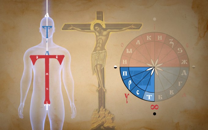 У старим писмима (феничанско, старохебрејско), слово Т има облик крста +. Свако носи свој крст – свако носи крст свог тела, своје ТВАРИ- његова ограничења, његове склоности и његову судбину – карму. Облик људског тела је крст. Док смо у телу, душа је телом распета и васкрсава тек по смрти или утрнућу тела. Трпљење је истрајавање и чување душе у пркос искушењима тела – његовим потребама, болима и задовољствима .У хебрејском и феничанском писму слово Т носи назив ТАВ што би могло бити наше ТАВАН, ТАВАНИЦА што се изједначава са идејом ТВЕРДА – свода.