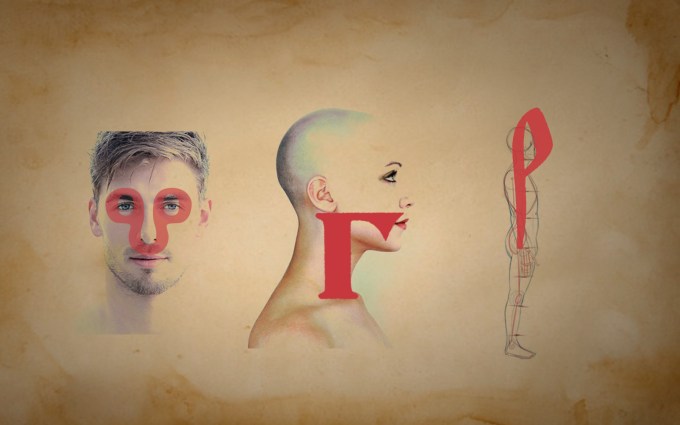 Грчко слово гама (γάμμα) означава глас „г“ и наводно је усвојено у азбучно писмо где добија назив глаголи. Глас „г“ је задњенепчани грлени глас који настаје спајањем задњег дела језика и задњег непца. Док гама не значи ништа на грчком, назив азбучног слова глаголи, што значи говори, крије идеју коју сам глас „г“ представља. То значење видимо и у речима: грло, глас, говор, гргорење, гргутање, гроктање, грцање, гутање, гуцање, галама, граја, громкост, грижење итд. Све ове речи у вези су са грлом (или устима) и грленим гласом „г“ које означава азбучно слово глаголи. Слово г представља две црте спојене под правим углом. Сама реч угао садржи слово г а врат и вилица су спојени под (правим) углом и заједно чине (грло и уста) говорни апарат. Управо у том углу између грла и уста настаје глас „г“.