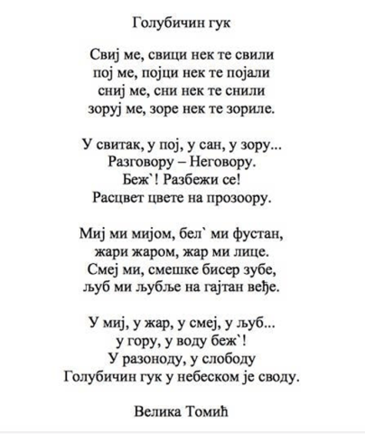 Велика Томић: Голубичин гук