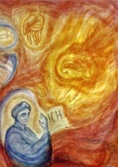 – У човјеку… Воља усмјерава Будну пажњу у оно што човјек јесте (душа-разум-тијело) а у Дух се уздиже одраз-свједочанство о створеном душа-разум-тијело троуглу=Свјесност.