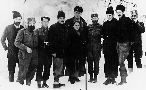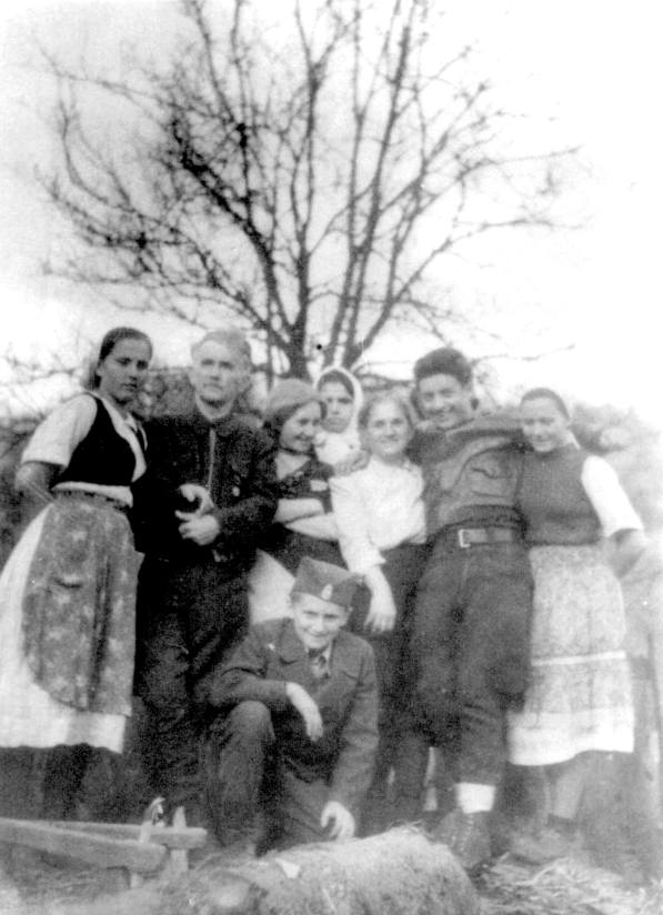 Фотографија ђенерала Светомира Ђукића ( други с десна ) са свадбе његове кћерке Татјане и мајора Милана Стојановића Циге. На фотографији су супруга и син ћенерала Ђукића. Фотографију је снимио ђенерал Дража Михаиловић фебруара 1945. у Копривни, на Требави.