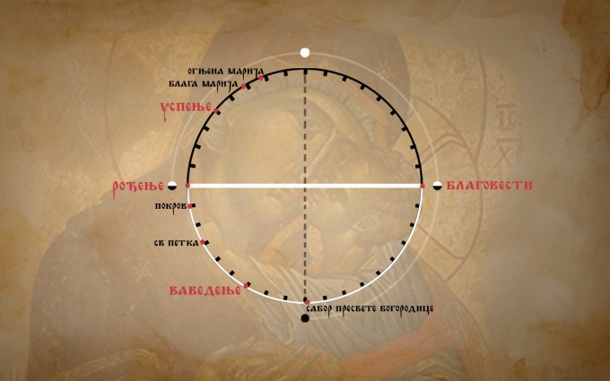 Календарски живот Пресвете Богородице састоји се от четири главна празника: Рођење, Ваведење,
